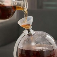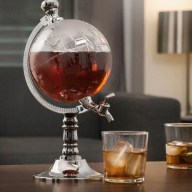 Praktisch und stilvoll zugleich, wird der Getränkespender der Star auf jeder Party oder Familienfeier sein. Er ist kugelförmig und eignet sich perfekt zum Servieren von Säften, spritzigen Getränken, Bier und ähnlichem. Entfernen Sie einfach den Stöpsel, der sich dort befindet, wo die Achse die imaginäre obere Halbkugel schneidet, gießen Sie das Getränk mit dem mitgelieferten Trichter ein und zapfen Sie es dann mit dem kleinen Hahn. Der Globus ist aus BPA-freiem PMMA hergestellt.