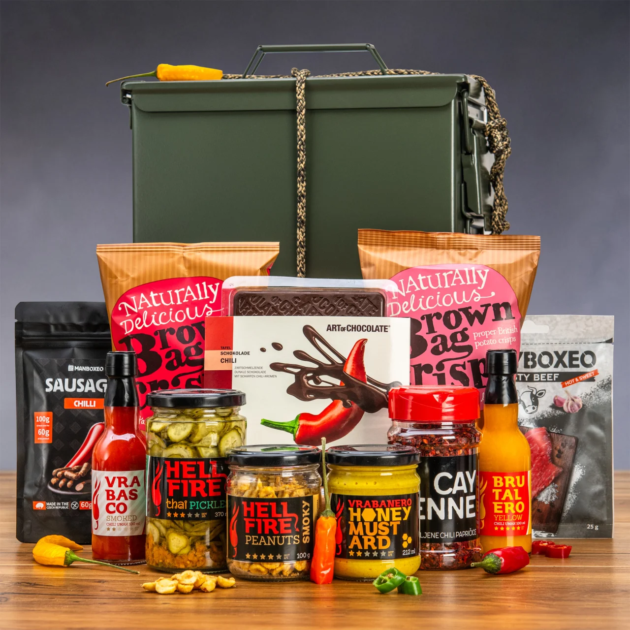 Was kommt nach dem gewonnenen Duell? Die verdiente Belohnung! Unsere Box ist randvoll mit kulinarischen Schätzen, bei denen die Schärfe im Mittelpunkt steht. Freuen Sie sich auf scharfe Snacks, feurige Soßen und ein süß-scharfes Finale. Alles, was das Herz eines Chili-Liebhabers höherschlagen lässt – und was man im Laden garantiert nicht findet.