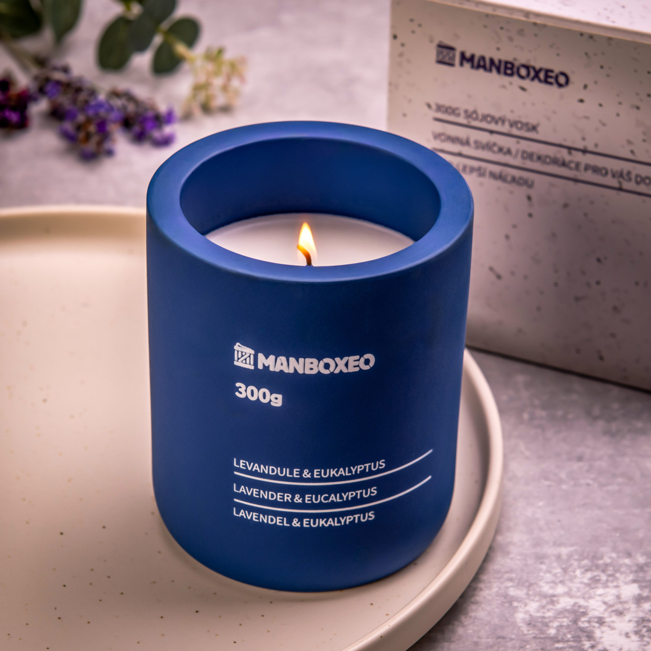 Zement-DUFTKERZE in Geschenkbox 300g – Lavendel & Eukalyptus – Eine Betonkerze? Ja, Sie sehen richtig! Sie duftet nach Lavendel und Eukalyptus und begeistert mit ihrem minimalistischen Design, das überall passt. Zusätzlich lässt sich ein Wunschtext oder Motiv eingravieren.