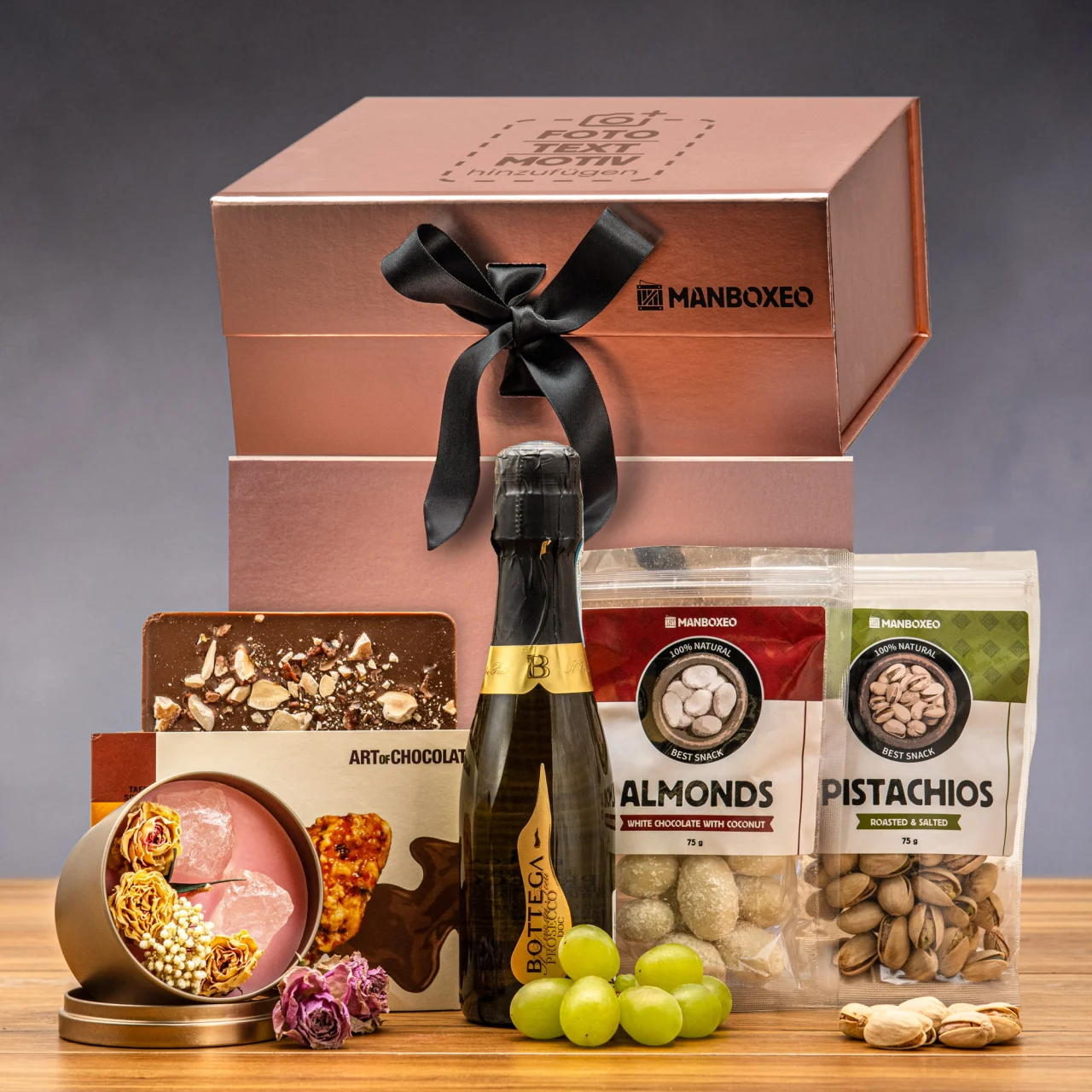Elegant gestaltet, mit Magnetverschluss und Schleife – unser Giftboxeo ist pure Raffinesse. Sie möchten ein unvergessliches Geschenk machen? Lassen Sie einen Wunsch oder ein Motiv auf den Deckel gravieren. Der Erfolg ist Ihnen sicher!