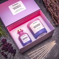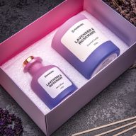 Ist es besser, eine Duftkerze oder einen Diffusor zu schenken? Machen Sie am besten keine Kompromisse und holen Sie sich unser wunderschönes farbiges Set. Es sieht absolut göttlich aus und duftet nach Lavendel mit Rosmarin. Das Tüpfelchen auf dem i ist die elegante Geschenkbox, die Ihnen komplizierte Verpackungen erspart.