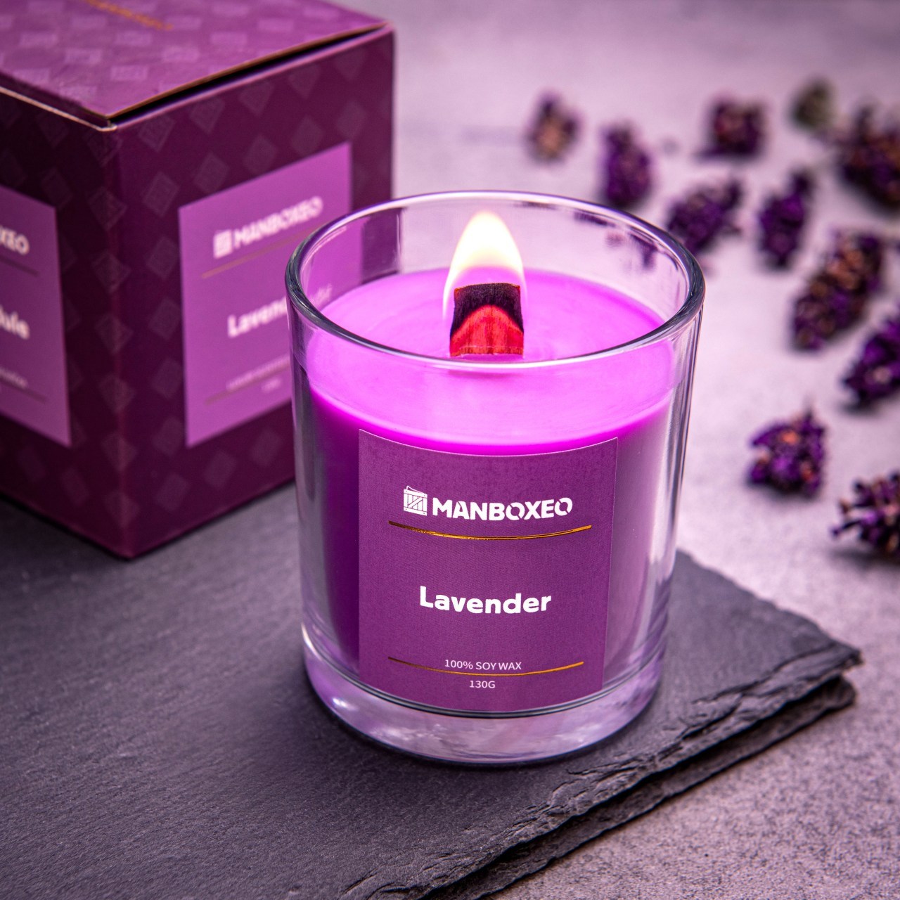 Sojakerze mit hölzernem Knisterdocht und intensivem Duft - Lavendel 130 g- Wie das berühmte Lied schon sagt, so ist eine Kerze ganz aus Lavendel. Sie wird die Sinne erfreuen und beruhigen und die empfindlicheren Menschen in einen erholsamen Schlaf wiegen. Für uns nur Positives.