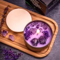 Einzigartig gestaltete Kerze in einer Zinndose mit einem intensiven Duft - Lavendel 200 g - Klopf, klopf! Wer ist denn da? Eine Kerze in einer Dose mit einem beruhigenden Lavendelduft. Hergestellt aus Sojawachs mit einem Tropfen natürlichem Duft und verziert mit schönen Strasssteinen. Keine Chemikalien, nur ein reines Wunder der Natur.