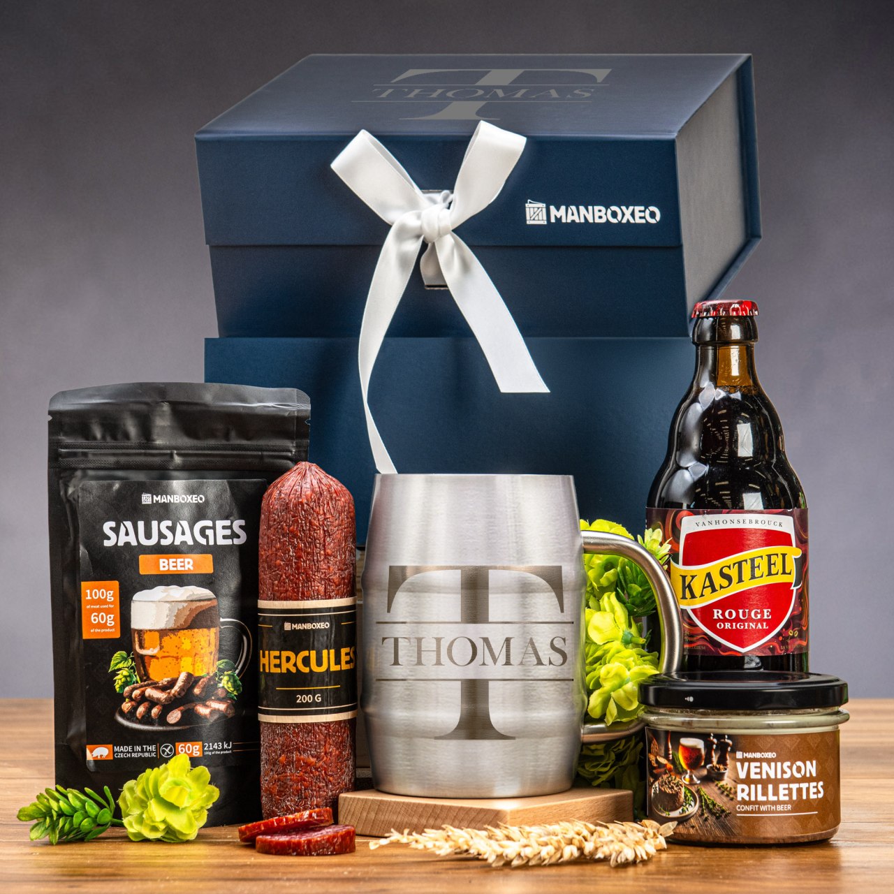 Das Öffnen dieser Box war für den Beschenkten vielleicht keine große Herausforderung, aber was sich darin verbirgt, ist mehr als verdient. Luxuriöse Bierspezialitäten aus aller Welt, ein paar leckere Snacks – und unser edler Kühlbierkrug, damit das Bier auch stilvoll genossen werden kann. Einfach die perfekte Kombination!