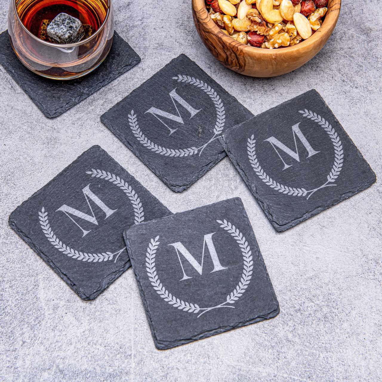 Schiefer-Untersetzer – Servieren Sie Ihre Drinks wie ein Profi! Die Schiefer-Untersetzer sehen edel aus, verleihen jedem Glas Stil und schützen Tisch oder Tischtuch vor unschönen Wasserrändern. Und wenn Sie gerade keine Getränke servieren, können Sie sie auch als originelle Servierplatten für Fingerfood verwenden.