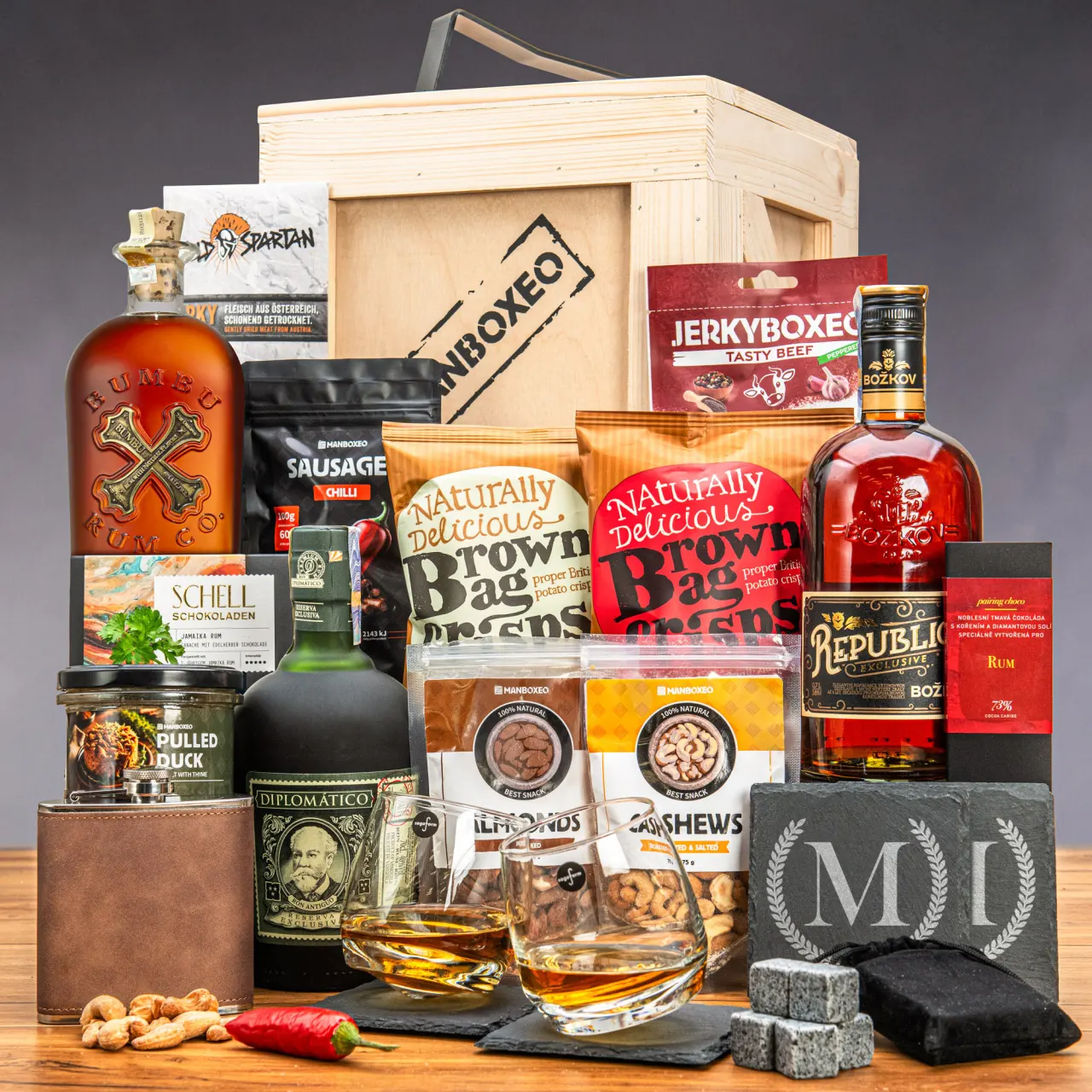 Stoßen Sie auf die Gesundheit und das Glück des Jubilars mit dem Inhalt unserer Kiste an. Neben hochwertigem Rum finden Sie darin clevere Extras, die jeden Schluck noch ein bisschen besser schmecken lassen. Dazu haben wir süße und salzige Leckereien hinzugefügt, die die Aromen des Rums perfekt unterstreichen. Und wie genießt man das Ganze am besten? In guter Gesellschaft!