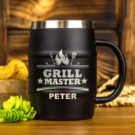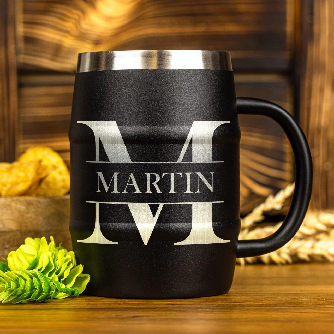 Schwarzer Edelstahl-Bierkrug mit Gravur