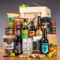 Die perfekte Überraschung für einen Bierliebhaber? Diese großartige Kiste voller Bierspezialitäten. Und das ist noch nicht alles. Neben dem goldenen Gerstensaft verstecken sich darin noch ein paar leckere Snacks, die perfekt zum Bier passen – und als Sahnehäubchen des ganzen Erlebnisses: unser einzigartiger Kühlbierkrug.