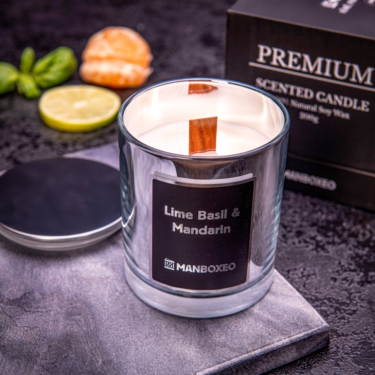 Luxuriöse Duftkerze 200 g – Sandelholz & Orange – Lernen Sie unsere Super-Kerze kennen! Sie vereint stundenlanges angenehmes Licht, den intensiven natürlichen Duft von Sandelholz und Orange sowie ein stilvolles Wohnaccessoire. Sie wird Ihr Herz erobern und in jedem Raum glänzen!