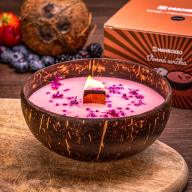 Kokos-DUFTKERZE – Waldfrüchte – Nein, das ist kein Dessert – das ist eine Kerze! Natürlich, duftend, liebevoll gemacht. Sie verströmt den herrlichen Duft von Waldbeeren und ihr Holzdocht knistert wie ein Kaminfeuer. Schafft eine wunderbare Wohlfühlatmosphäre.