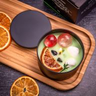 DUFTKERZE in Metalldose in Geschenkschachtel 200g – Süße Orange – Diese Kerze mit dem göttlichen Duft von Orangen erfüllt Ihr Zuhause mit einem herrlichen Aroma und warmem Licht. Zudem ist sie mit getrockneten Früchten, Muscheln und kleinen Steinen dekoriert, die beim Brennen wunderschön glitzern.