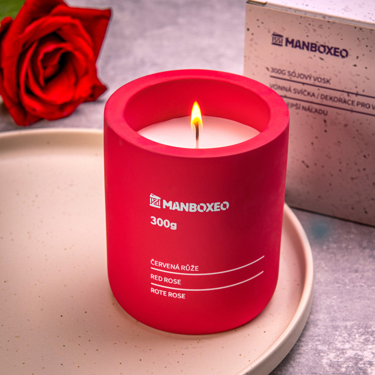 Zement-DUFTKERZE in Geschenkbox 300g – Rote Rose – Eine Betonkerze? Ja, Sie sehen richtig – sie duftet nach Rosen und überzeugt mit ihrem schlichten, minimalistischen Look, auf den Sie sogar eine persönliche Gravur anbringen lassen können.