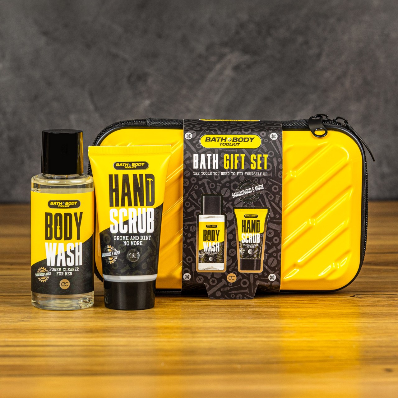 Badeset BATH and BODY TOOLKIT — Die ganze Badeausstattung in die Werkstatt oder auf Reisen mitzuschleppen möchte kein Mann. Mit unserem Reiseset kommt er problemlos aus. Das Set enthält Duschgel und ein Peeling für besonders verschmutzte Hände.