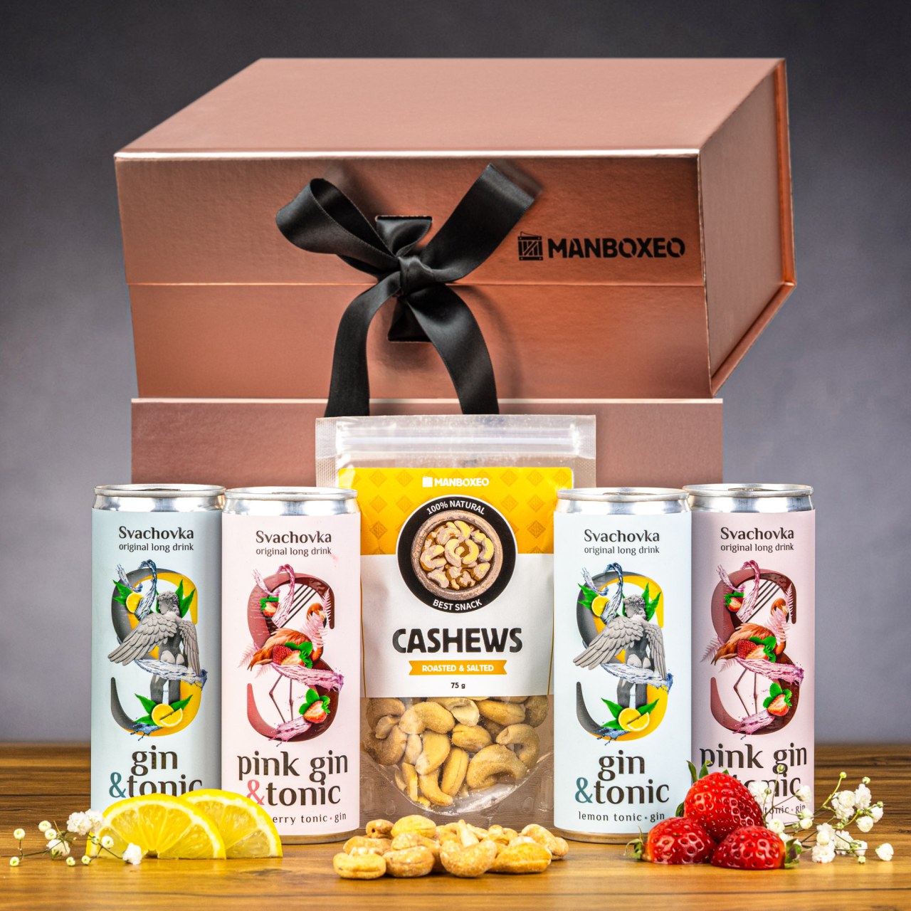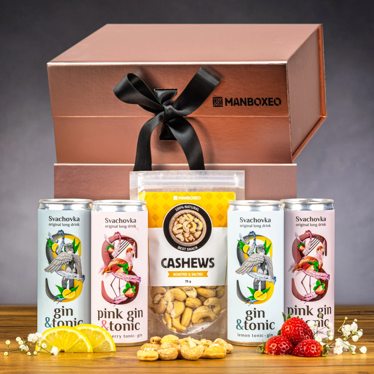 Valentinstagsromantik ohne Kitsch. Gin Tonic, Nüsse und Ruhe zu zweit. Eine elegante Box, die Sie mit einer Liebesbotschaft ergänzen können – und für sich sprechen lassen. Und wenn alles ausgetrunken ist? Perfekt geeignet für Kerzen, Raumdüfte oder andere Kleinigkeiten, die Sie griffbereit haben möchten.