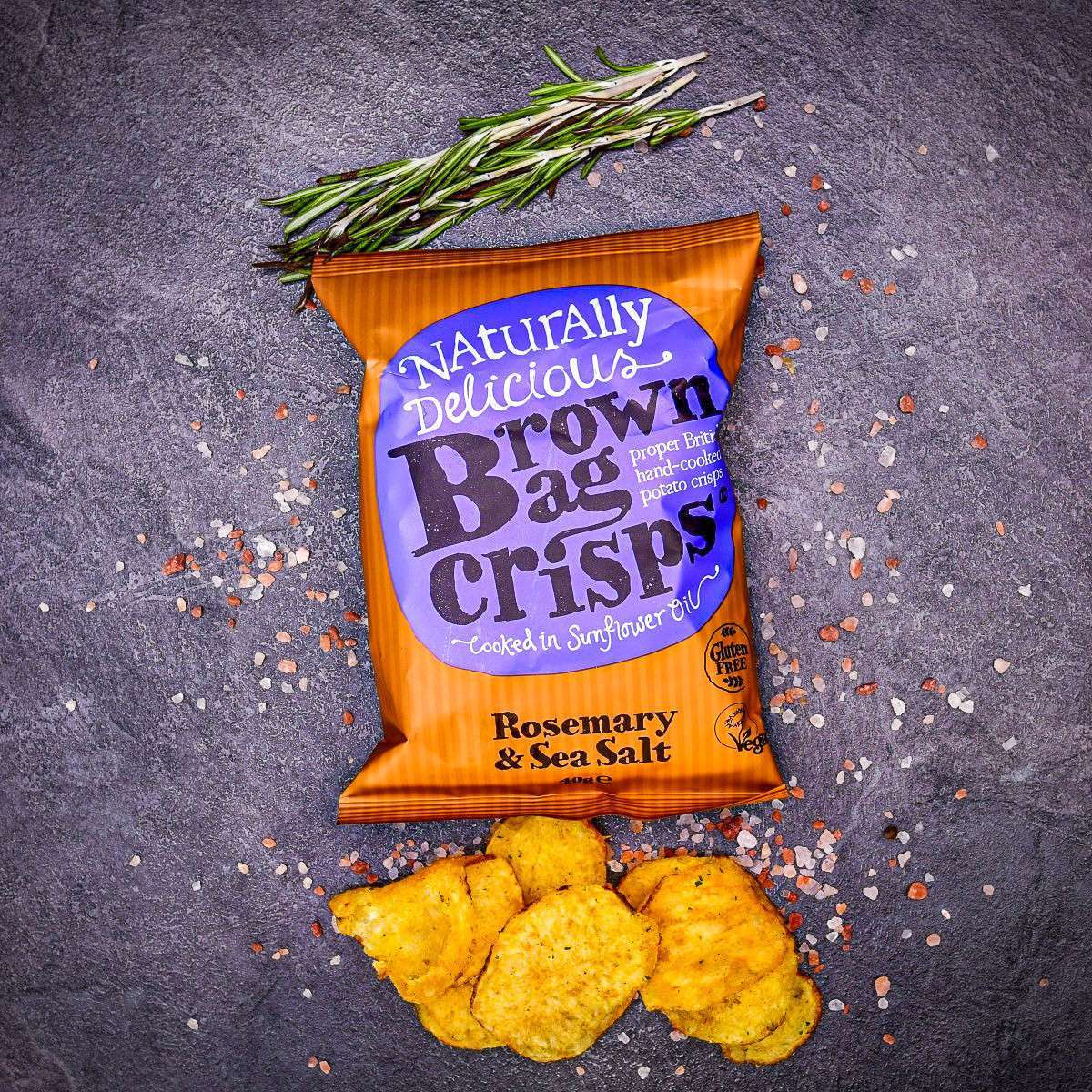 Knusprige, handgemachte Brown Bag Crisps mit Rosmarin und Meersalz 40 g