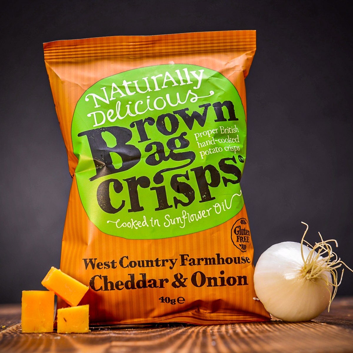 Knusprige, handgemachte Brown Bag Crisps mit Cheddar und Zwiebel 40 g