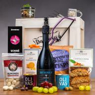 Im Inneren wartet Prosecco, den man ganz ohne schlechtes Gewissen genießen kann. Er enthält nämlich 0 g zugesetzten Zucker – dazu gibt es eine Auswahl süßer und herzhafter Köstlichkeiten für ein rundum gelungenes Genusserlebnis.