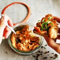 Gebratenes Kaninchen mit Schweinebraten – perfekt gewürztes Kaninchenfleisch und Schweinebauch, die in duftenden Gewürzen eingelegt sind und zusammen mit Zwiebeln und Gemüse gebacken wurden. Glutenfrei.