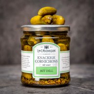 Eingelegte Gurken Knackige Cornichons 330 g - leckere Gurken, eingelegt mit Dill und Vanille, die zusammen einen sehr überraschenden Geschmack ergeben, den Sie einfach lieben werden.