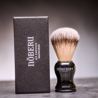 Eleganter Rasierpinsel Noberu Synthetic – Eleganter Rasierpinsel Nober mit Griff aus künstlichem Harz und synthetischen Fasern, welche Dachshaar imitieren - Geschmeidigkeit und Wasserfestigkeit. Der Knotendurchmesser beträgt 21 mm.
