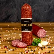 Premium Herkules Salami 200g – Eine außergewöhnliche Salami, die Tradition und Innovation vereint. Schon der erste Biss begeistert mit einer perfekten Kombination von Aromen und einem unverwechselbaren Duft. Genießen Sie diese Spezialität zum Bier.