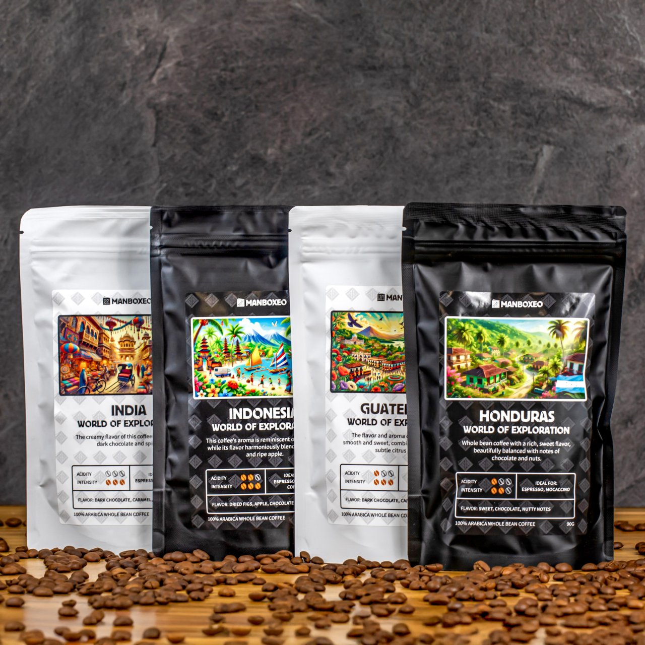 Indonesien – 100% ARABICA – Ganze Bohnen mit einem schokoladigen Duft und einem Geschmack, der getrocknete Feigen und Gewürze vereint. Angenehm erdig, hohe Intensität, niedrige Säure. Ideal für Espresso und Mokka. Gewicht: 90 g.