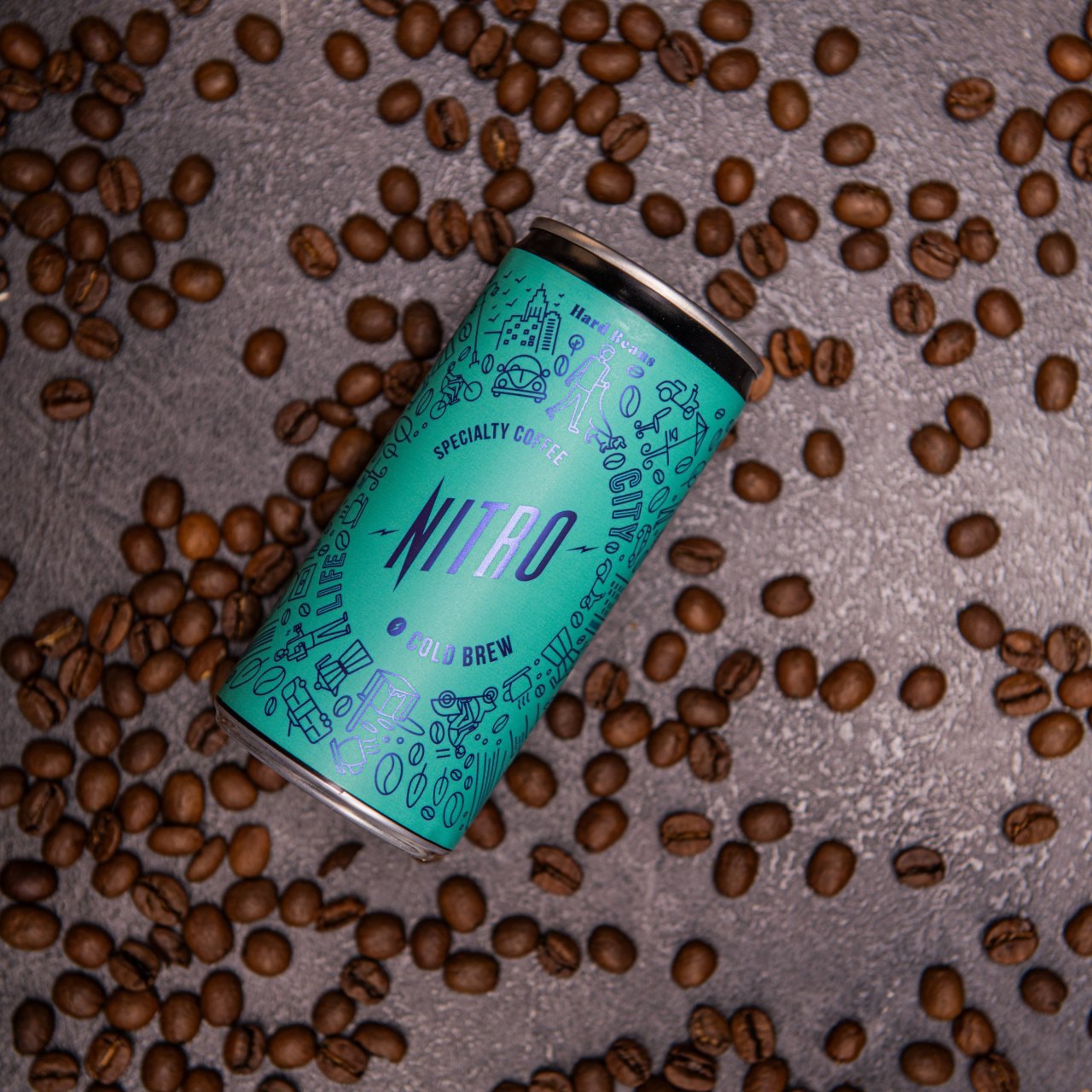Nitro Cold Brew Classic (200 ml) – Türkis – Was für eine Spezialität! Kaffee mit Stickstoff! Brasilianischer Yellow Bourbon Kaffee, mit flüssigem Stickstoff versetzt – das belebt das Repertoire jedes Kaffeeliebhabers. Der Geschmack kommt wunderbar zur Geltung und der Drink erfrischt auch an den heißesten Tagen. Am besten auf Eis servieren.