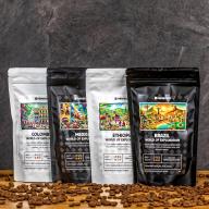 Kolumbien – 100% ARABICA – Ganze Bohnen mit komplexem Geschmack und Noten von Karamell und saftigem rotem Apfel. Hohe Intensität, niedrige Säure. Ideal für Espresso und Mokka. Gewicht: 90 g.