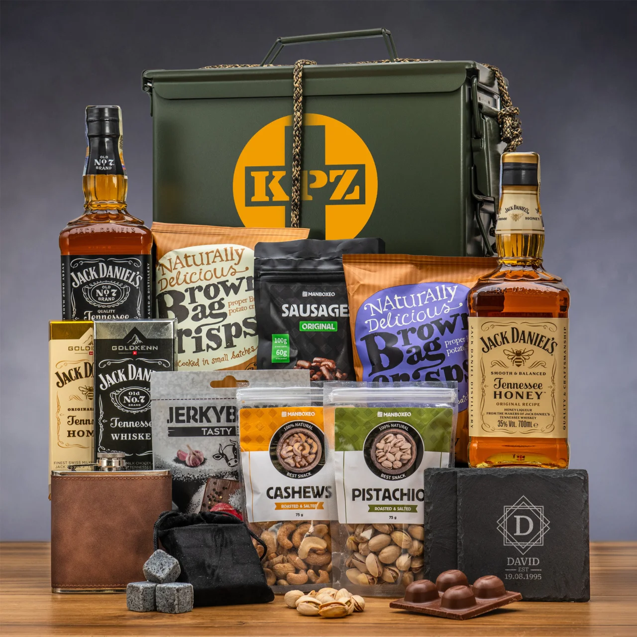 Was steckt in dieser markanten Box? Ein hervorragender Whiskey und dazu viele Leckereien, die nur darauf warten, vom Beschenkten entdeckt und genossen zu werden. Mit einem Glas edlen Tropfens wird das Ganze zu einer perfekten Kombination – fast wie ein Traum. Dieses Erlebnis bleibt garantiert unvergesslich