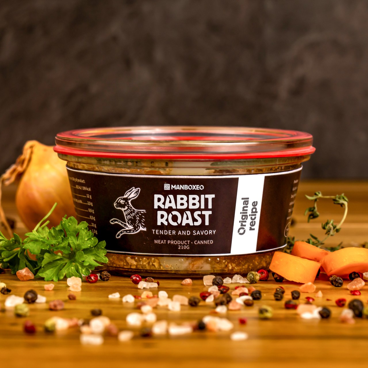 Gebratener Hase mit Schweinebauch – Perfekt gewürzte Stücke von Hase und Schweinebauch, mariniert in duftenden Gewürzen und goldbraun gebacken mit Zwiebeln und Wurzelgemüse. Auch für Zöliakie-Betroffene geeignet. Mmmm, lecker!