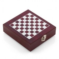 In der eleganten Holzkiste mit einem Schachbrett auf dem Deckel findet der Beschenkte ein komplettes Schachspiel in schönem Design und eine große Anzahl von Weinzubehör. Weinliebhaber werden sich garantiert über den universellen Weinverschluss, das Weinthermometer, den Tropfring, den Korkenzieher mit Folienschneider und Kapselheber freuen.