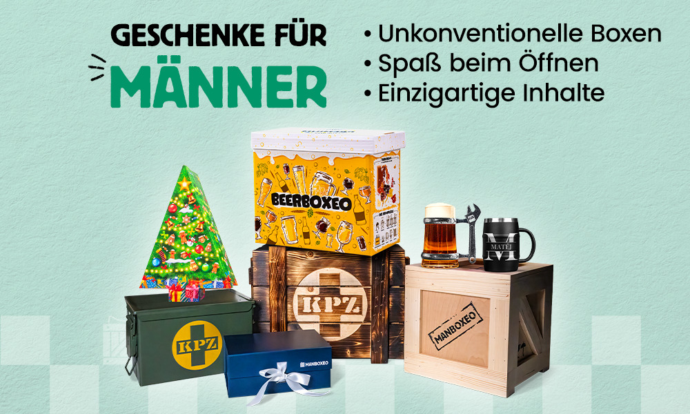 Ob Manboxeo mit Brecheisen, ein gravierter Bierkrug, eine eigene Mini-Hausbrauerei oder unsere Toolboxeo die man mit einem Sperrhacken öffnen muss. Unsere Produkte gehören zu den Top 10 Geschenken für Männer und sorgen garantiert für staunende Blicke.